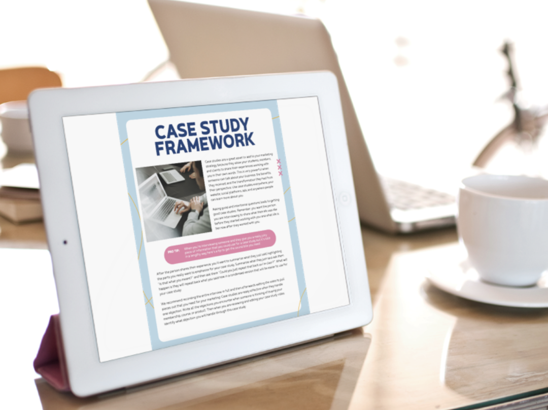 Case studies are a great asset to add to your marketing strategy, because it allows your students, members, and clients to share their experiences working with you in their own words. This is very powerful when someone can talk about your business, the benefits they received, and the transformation they had from their perspective. Use case studies everywhere, your website, social platforms, ads, and anywhere people can learn more about you.